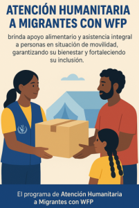 El programa de Atención Humanitaria a Migrantes con WFP brinda apoyo alimentario y asistencia integral a personas en situación de movilidad, garantizando su bienestar y fortaleciendo su inclusión.